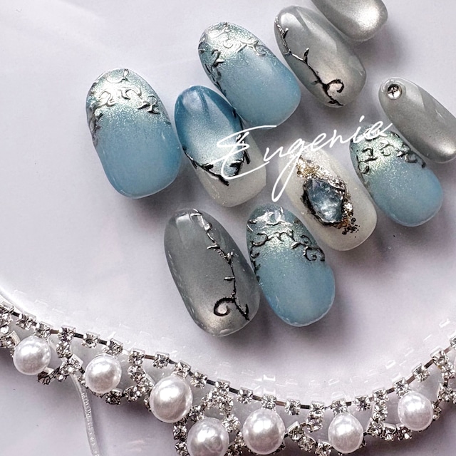 ※こちらはサイズオーダー商品です。予めショッピングガイド・サイズのご確認をお願いいたします。 爪先に施したアラベスク風のアートが素敵なニュアンスフレンチネイル ✿.*・ 透明感のあるアイスブルーを基調に爽やかさと上品さを感じられる雰囲気に仕上げました️∗*゚ 主張しすぎない落ち着きの中に、さりげない個性を感じられるデザインで春夏の光に映える涼しげな色合いです❁⃘*.゚ 日常使いはもちろん、特別な日にもオススメです.*・゚ ♦チップタイプ、サイズ 作品画像のスクロールページにてご確認ください ♦オーダー方法 注文時の備考欄にて、ご希望のチップサイズを親指から順にご記入ください オプションよりご希望のチップをお選びください。 ⚠︎︎サイズやチップタイプの記載をお忘れの場合はDM又は公式LINEにて購入時のスクリーンショットと共にサイズをお知らせください。 ※ご購入後、2日以内にご入金の確認ができない場合キャンセルとさせていただきます ※チップタイプ、サイズの未記入の状態で2日以内にご連絡頂けなかった場合はキャンセルとさせていただきます。 ※ネイルチップは1つずつ手作りで作成させていただいております。筆のタッチやカラーの配合により多少の差が生まれてしまいます。写真と全く同じにならない事をご了承ください。 ・ご入金後10日で発送いたします。 ※キャンセルは原則として承っておりません。 ♦セット内容 ・ネイルチップ ・粘着シール1回分 ・アルコールシート ・ウッドスティック ・ネイルファイル