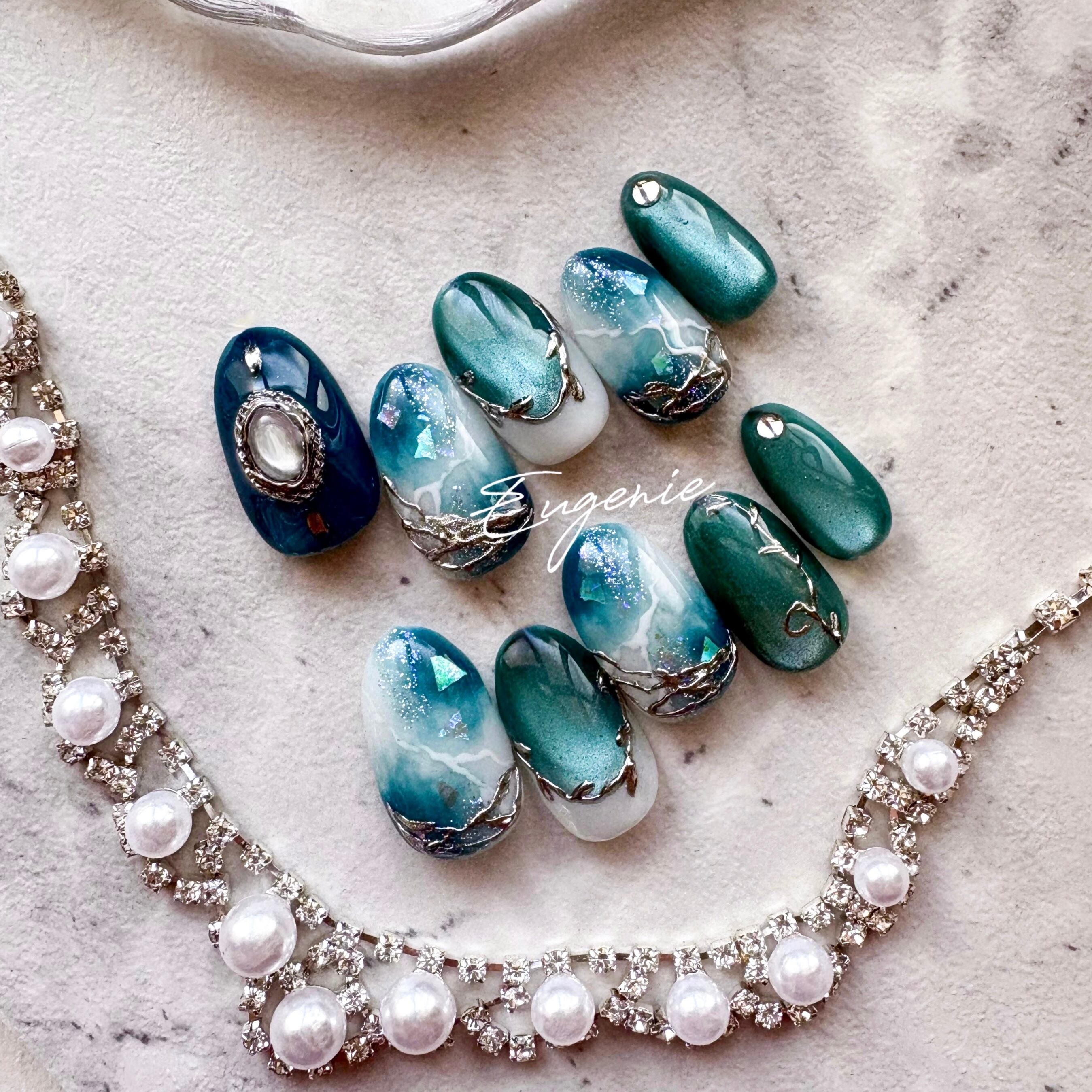 ※ネイルチップは1つずつ手作りで作成させていただいております。筆のタッチやカラーの配合により多少の差が生まれてしまいます。写真と全く同じにならない事をご了承ください。