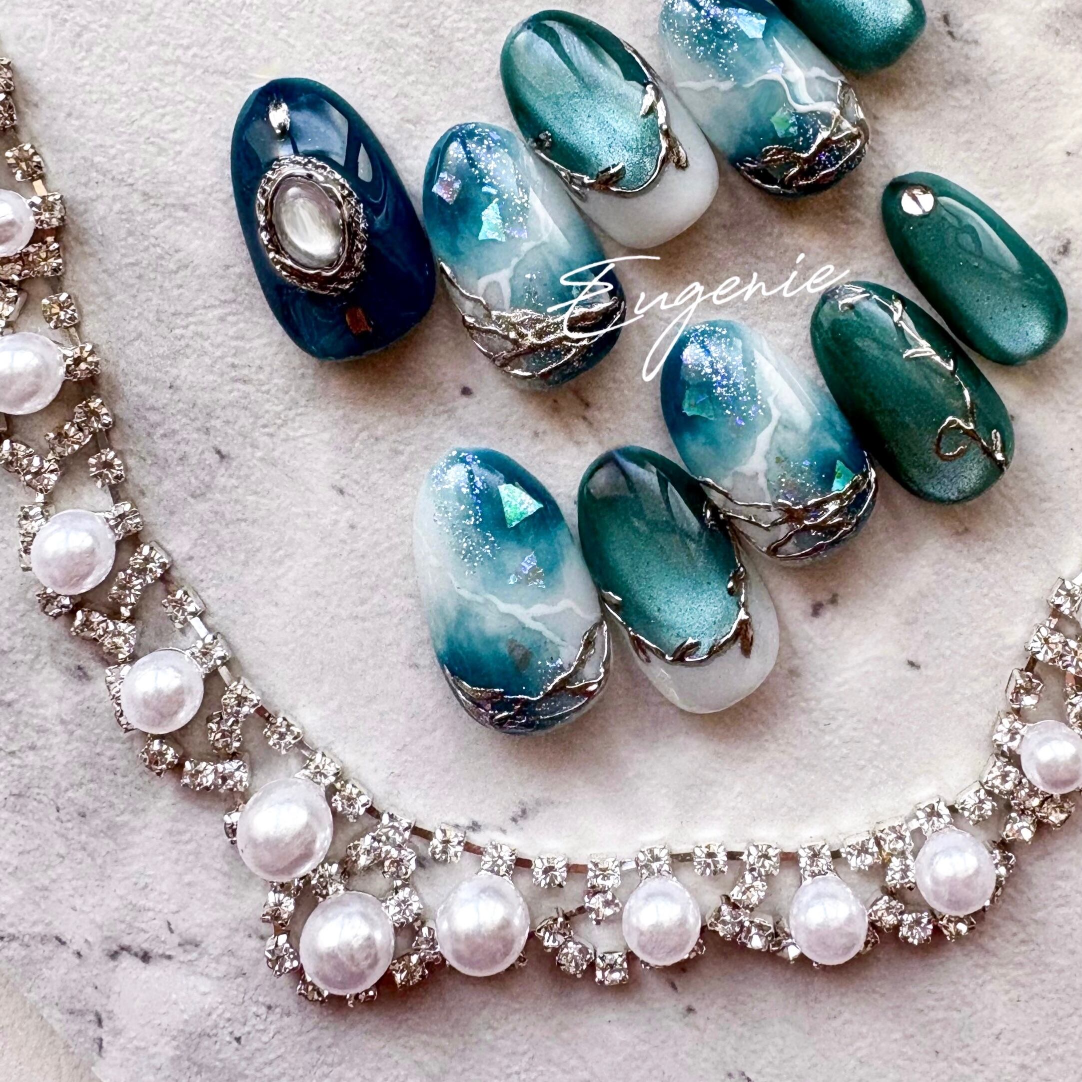 ターコイズブルーにホワイトを溶かし込んだ大人っぽ天然石デザイン.*・゚